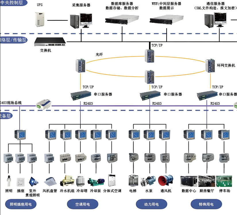 能耗管理系統(tǒng)是一種基于物聯(lián)網(wǎng)和大數(shù)據(jù)技術(shù)的創(chuàng)新管理系統(tǒng),旨在通過(guò)實(shí)時(shí)監(jiān)測(cè)和智能分析,實(shí)現(xiàn)對(duì)建筑物能耗的精細(xì)化管理和優(yōu)化。下面將介紹智慧能耗管理系統(tǒng)的系統(tǒng)架構(gòu)組成。