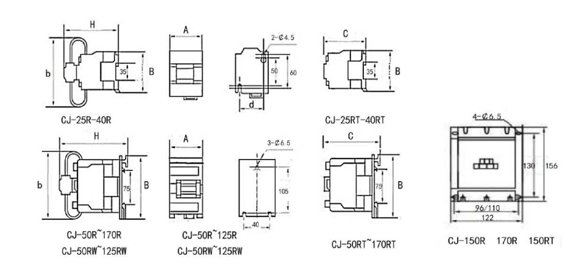 ·CJ-18R~CJ-40R提供兩對輔觸頭,可選1開1閉代號11型 或2開代號20型,默認(rèn)11型。 ·CJ-50R~CJ-125R提供三對輔觸頭,全部為2開1閉代號21型(可省略)。 ·CJ-150R 170R提供一對常開輔助觸頭。? ·RT型產(chǎn)品沒有限流機構(gòu)和限流阻抗,必須工作在串接電抗器的回路中。 ·25kvar~60kvar 可選配外引接線式,下單清注明。 |
