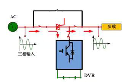 當電網(wǎng)出現(xiàn)擾動瞬間,反并聯(lián)晶閘管快速關(guān)斷,負載與電網(wǎng)隔離,由逆變器向負載供電