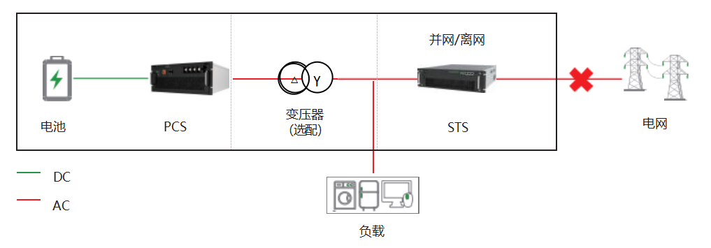 ZHXK-ESTS當(dāng)儲(chǔ)能系統(tǒng)需要為重要負(fù)載提供備用電源時(shí),儲(chǔ)能系統(tǒng)需要配備STS,以便在電網(wǎng)斷電時(shí)將儲(chǔ)能系統(tǒng)和重要負(fù)載與電網(wǎng)斷開。通過這種方式,儲(chǔ)能可以為關(guān)鍵負(fù)載提供不間斷的備用電源。