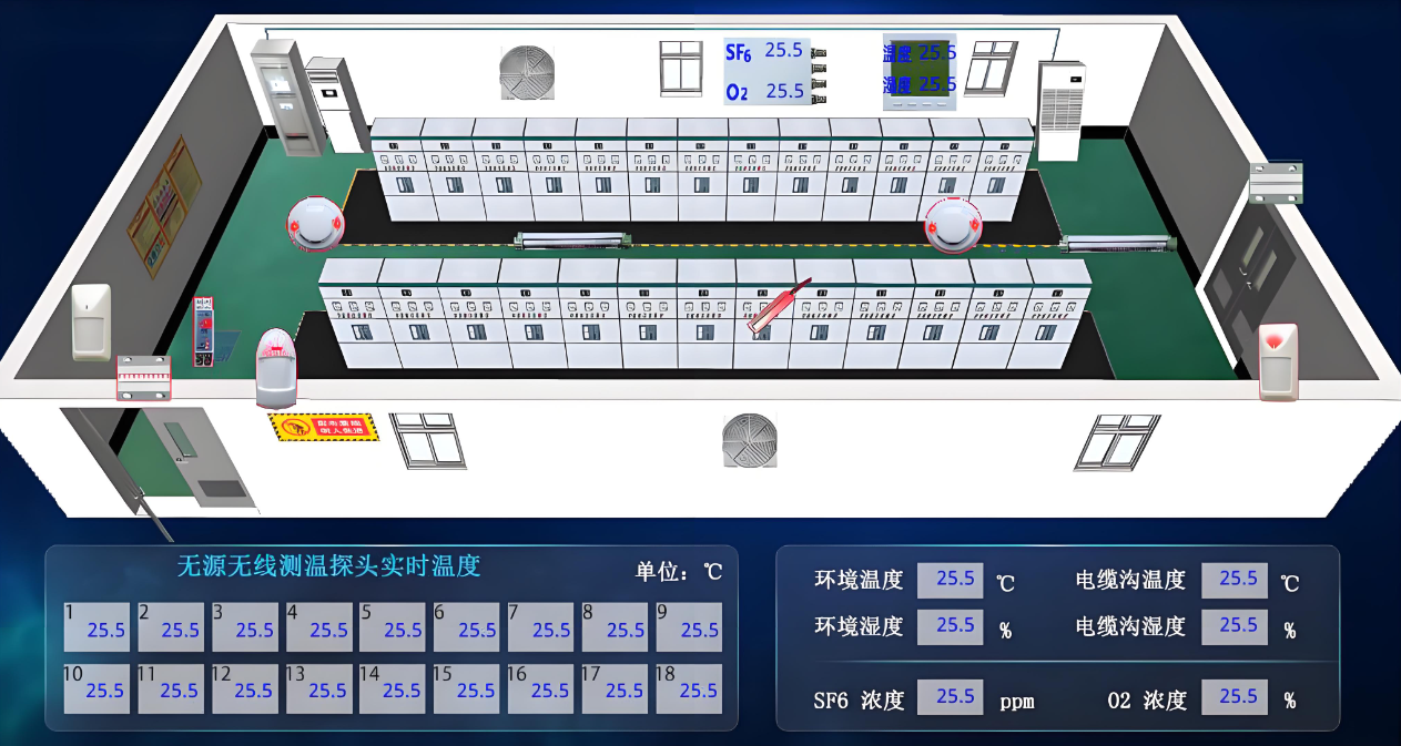 對變壓器、高壓柜、電纜和低壓柜的溫度、局放等設(shè)備狀態(tài)信息采集,并結(jié)合擴(kuò)展設(shè)備實(shí)現(xiàn)電氣設(shè)備預(yù)警聯(lián)動(dòng),對配電房設(shè)備實(shí)時(shí)在線監(jiān)控。