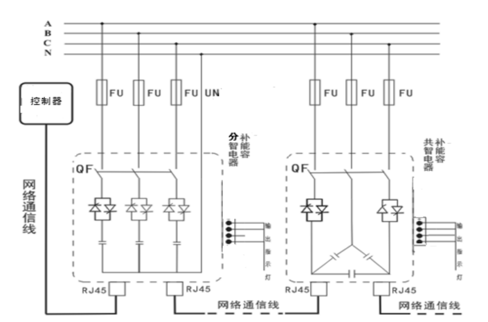 智能組網(wǎng):485通訊接口,內(nèi)置 MODBUS-RTU協(xié)議;可實現(xiàn)遠程監(jiān)控。產(chǎn)品可多臺聯(lián)機使用時,自動產(chǎn)生主機從機,構(gòu)成無功自動控制系統(tǒng)。