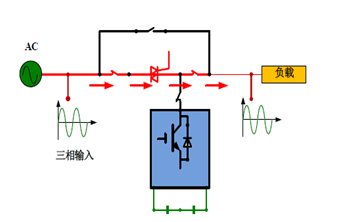 故障或維護的情況下,負載電流將自動轉(zhuǎn)移到故障安全旁路。即電流將通過反并聯(lián)晶閘管的接觸器或旁路開關(guān),直接向負載供電