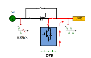 當電網(wǎng)出現(xiàn)擾動瞬間,反并聯(lián)晶閘管快速關(guān)斷,負載與電網(wǎng)隔離,由逆變器向負載供電