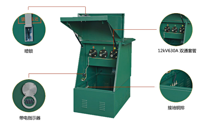 安全防護(hù):全絕緣、全密封結(jié)構(gòu),無(wú)需絕緣距離,可安裝電纜型故障指示器,便于迅速查找電纜故障,可靠保證人身安全;